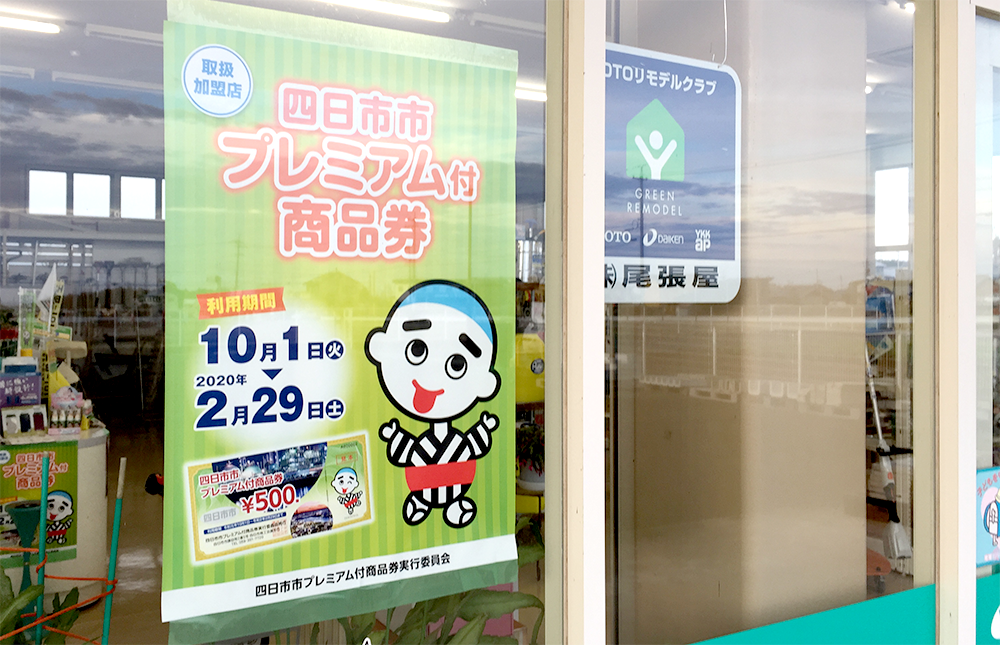 当店では、四日市市プレミアム付商品券でのお買い物ができます。