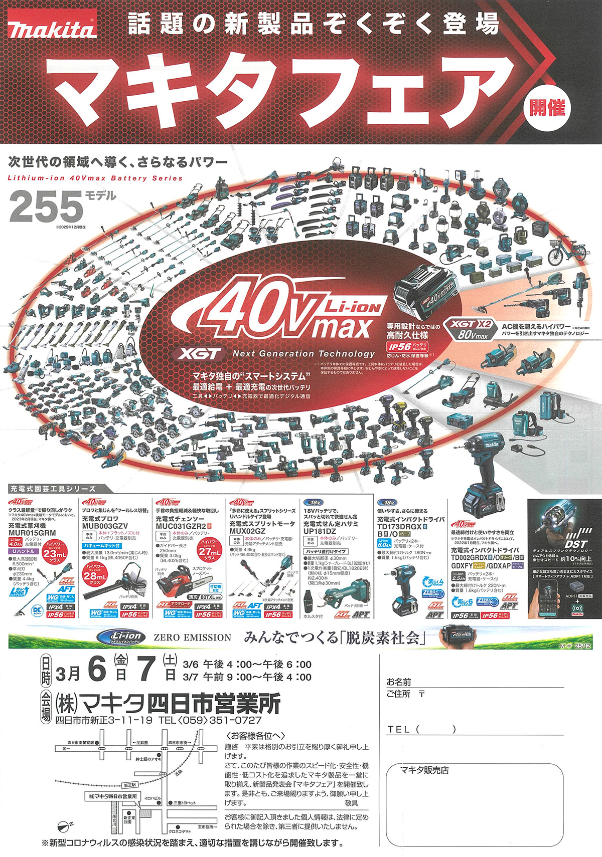 3/6(金)・7(土)に、マキタ四日市営業所にて「マキタフェア」を開催いたします。