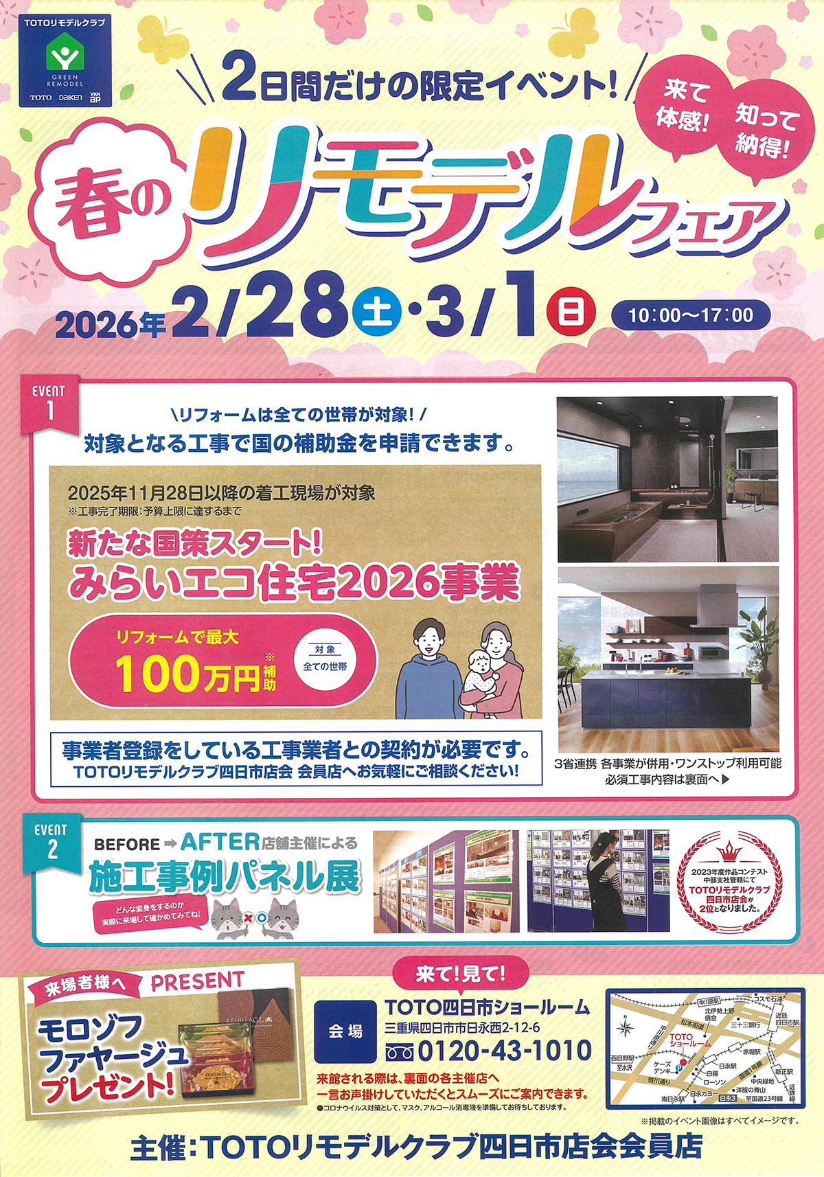 2/28(土)・3/1(日)に、TOTO四日市ショールームにて「春のリモデルフェア」を開催いたします。